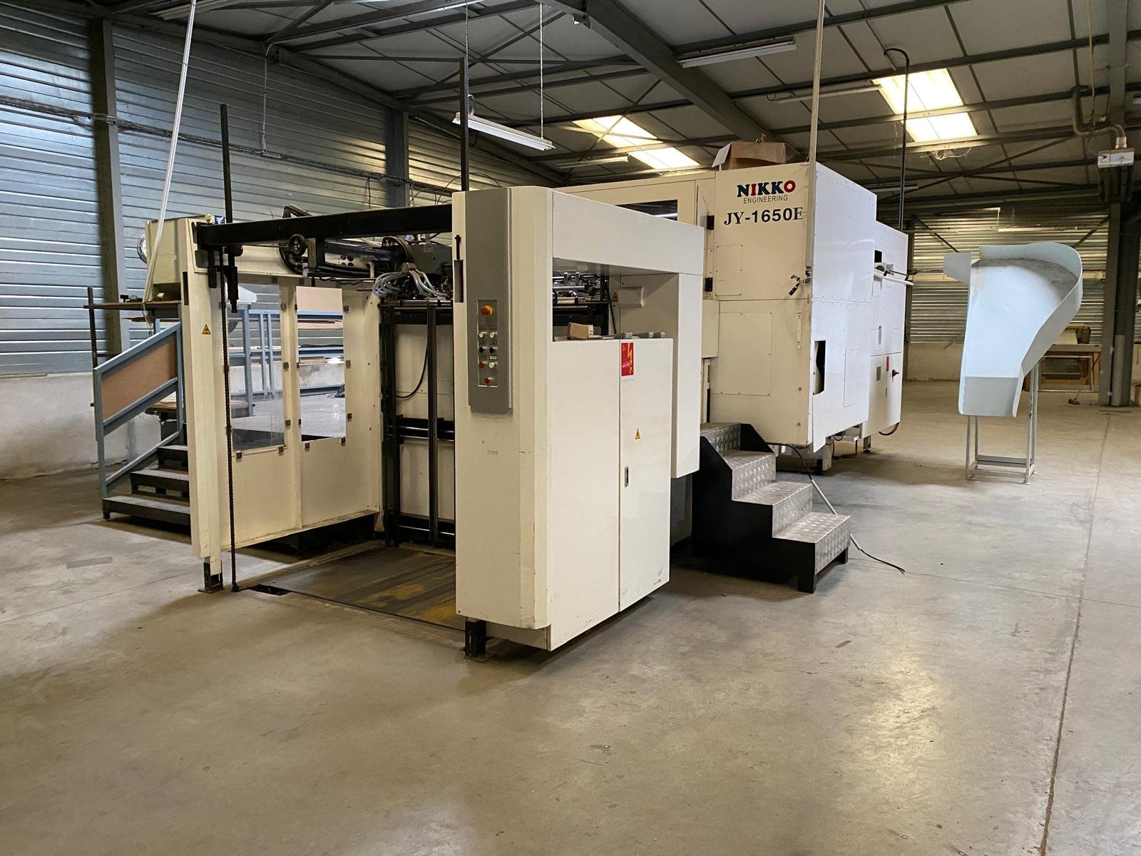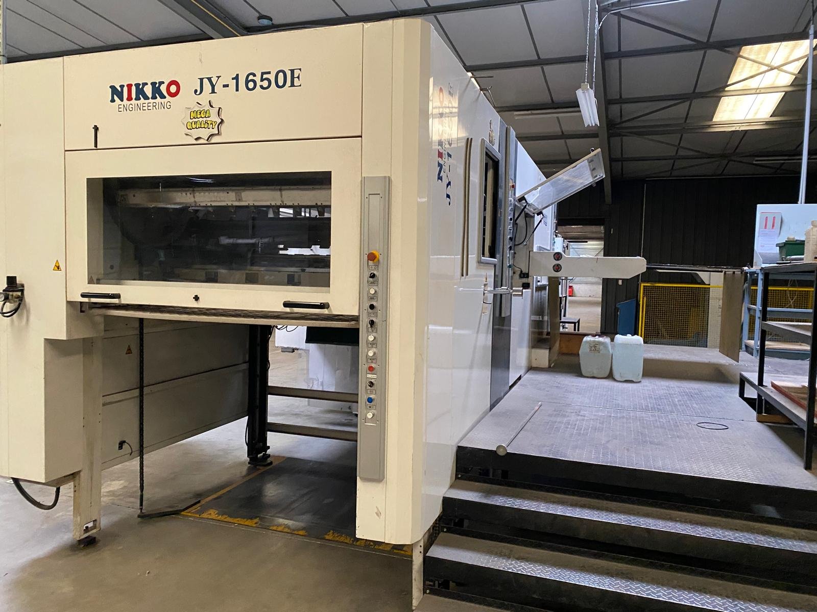 that was developed through a collaboration with Japanese companies, including Nikko Engineering Co.This machine is designed for diecutting, stamping, and creasing, and the "1650" indicates a maximum sheet size of 1650 mm.The 2015 model year likely designates a specific version of this machine.Machine Type: An automatic flatbed diecutter for diecutting and stamping.YOCO, a company that partnered with Japanese manufacturers like Nikko Engineering.indicating the manufacturing year of this particular machine.Key features: Features include a diecutting pressure of up to 400 tons, a centerline registration system, and a touch-screen interface for easy setup and monitoring.Other specifications: The machine is equipped with a feeder system (either top or lead edge), a diecutting section with high-pressure capabilities, and a stripping and delivery section,