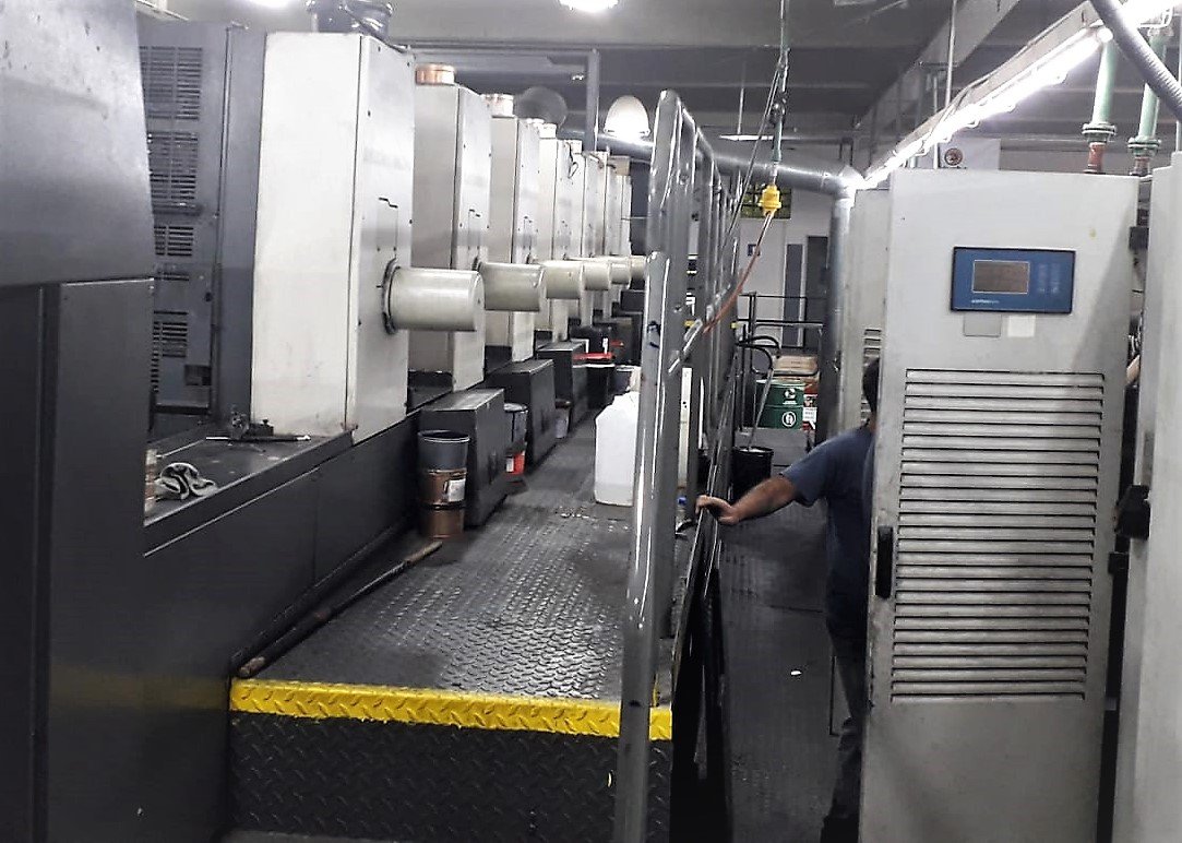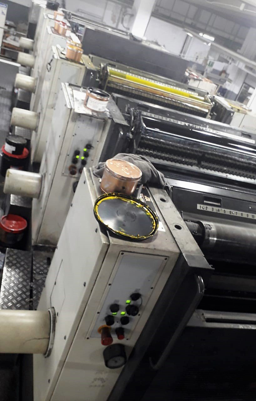 Roland 706- 3B LX UV Interdeck Year 2003 Format: 74 X 104 cm Roland Delta Matic Dampening Ink Remote control.RCI CCI I.R Graphometronic Densitometer ink temperat control APL: Autoplate: automatic Automatic rollers wash automatic blankets wash automatic impression cylinders wash Job Pilot pre press.Press Monitor Preset Feeder ^ delivery Non Stop feeding & delivery Air Glide.Aupasys Logistics Ink mixers Battery temper Infeed & outfeed automatic loading.Tresu Doctor Blade.Anilox chamber varnish with metering knife.Grafix Ionojet antistatic Devices Automatic.Grafix Cantronic powder printing press.TL: hot air With UV drying 3 mobile UV lamp.& 2 output lamp.Pecom Press Center.LCS.Quick Start.Mounted 80 cm elevated.Speed 16,000 p/h.In 2014 and 2022 Refurbished.Only 217 million Working excellent condition available immediatlely.