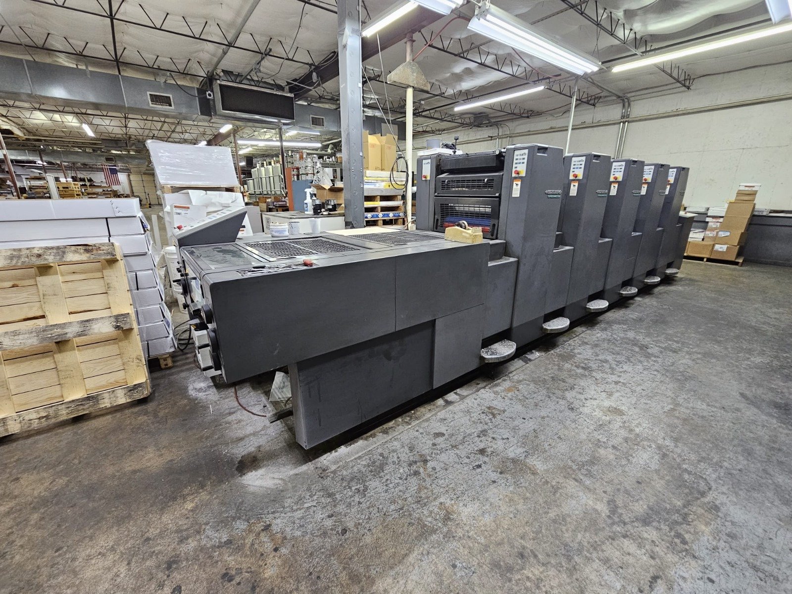 Heidelberg SM52-5HP.Year 1999.Format: 37 X 52 cm.Alcolor Dampening.CPC 1.04.CPTronic.Autoplate change.Automatic Rollers Wash.Automatic Blankets Wash.Automatic Imps Cylinders Wash.Refrigeration & Recirculation Chiller.Non Stop Feeder.Non Stop Delivery.Double Sheet Control.Powder Spray.High Pile delivery.Perfector 2/3.121 Million Impression.No Damage Cylinders.In Production.Available Immediately.